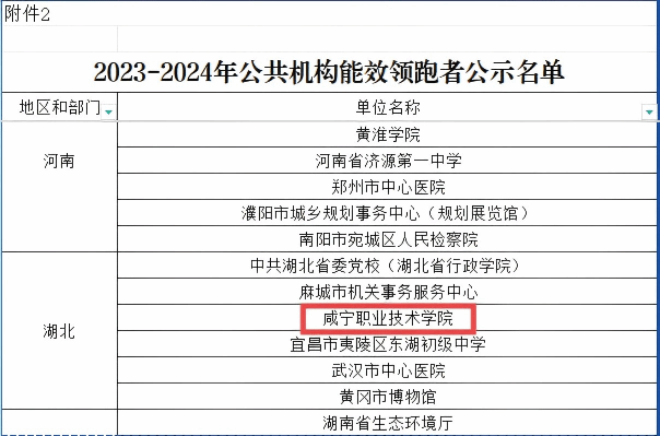 近日,国家机关事务管理局等三部门联合公布2023-2024年公共机构能效领跑者遴选结果,咸宁职业技术学院从全国众多申报单位中脱颖而出,成功入选,成为教育系统节能标杆。此次遴选经多轮严格筛选,全国仅198家单位获评“公共机构能效领跑者”。遴选依据国管节能〔2023〕282号文件开展,旨在推动公共机构绿色低碳发展,标准涵盖能源管理、技术改造等多维度。学校成功入选,彰显节能降耗的扎实成效与领先水平。长期以来,学校将绿色发展理念贯穿办学全程,成立节约型校园建设领导小组,构建“校级统筹、...