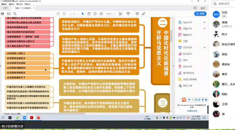 27日的分组学习环节,龚斌安、王翔、常卫峰、吴利才四位同志分别作宣讲报告。上午,王翔同志先以《新时代新征程坚持和发展中国特色社会主义的政治宣言和行动纲领》为题,分别从党的二十大的重大意义、党的二十大报告的基本框架和内在逻辑、主题主线和亮点等方面进行了阐述和解读,然后龚斌安同志为学工处党支部、通识教育直属支部、马克思主义学院直属支部等单位,作了题为《在“两个结合”中守正创新自信自强》的宣讲报告,他重点阐述了“两个结合”的深刻含义,并联系教学实际,就如何落实党的二十大精神作了解读。