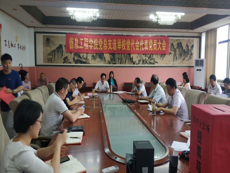 根据校党委的统一部署,7月12日上午,信息工程学院党总支在党员活动室召开选举校党代会代表党员大会,本次会议应到正式党员24人,实到21人,请假3人。校党委委员、组织部(人事处)部长曾志同志参加了大会。选举大会由学院党总支书记吴虓主持。祁爱萍同志担任监票人、盛象飞同志担任计票人。