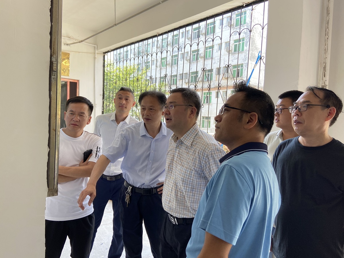 为加快推进暑期维修改造工程进度,7月15日上午,党委副书记、校长陈红卫,副校长周明生带领总务处、学工处等一行,顶着炎炎烈日、冒着高温酷暑,深入学生寝室维修改造工程现场,检查施工进度。