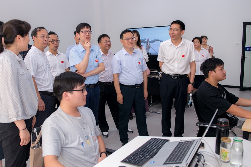 7月23日,教育部高等学校科学研究发展中心专家团队莅临我校调研虚拟仿真实训基地建设情况,国家职业教育虚拟仿真实训基地项目咨询专家王纪安等6位专家实地指导。我校党委书记高焕清,党委副书记、校长陈红卫,副校长方旭,党委委员、组织部(人事处)长曾志等参加调研。