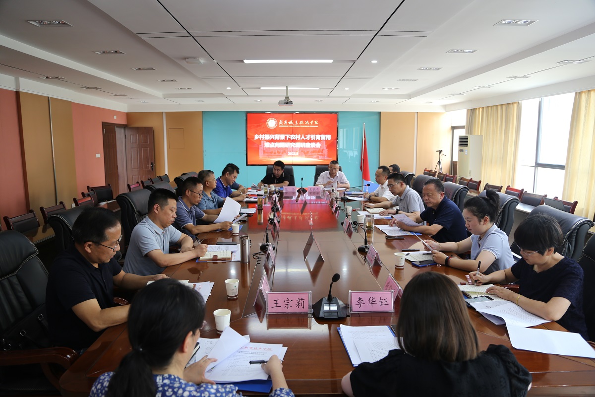 8月5日下午,咸宁市“乡村振兴背景下农村人才引育留用难点问题研究”专题调研座谈会在我校召开。党委书记高焕清,党委委员、副校长吴高岭,副校长曹树真出席。市委组织部人才工作科科长、市委人才办主任施锐主持会议。