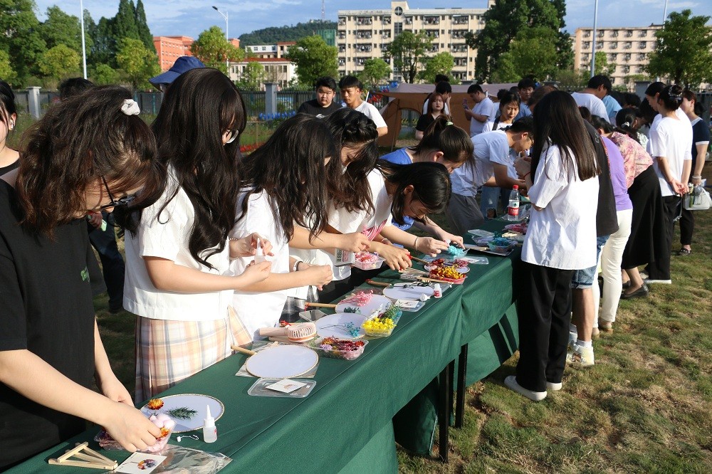 在五感悦心花园开园仪式上,老师和同学们组织、参与团扇制作、校园音乐会、果蔬种植、艺术插花、香囊制作等多项文化活动。校领导在“喜迎二十大”五个字形区域播撒下希望和奋进的种子。