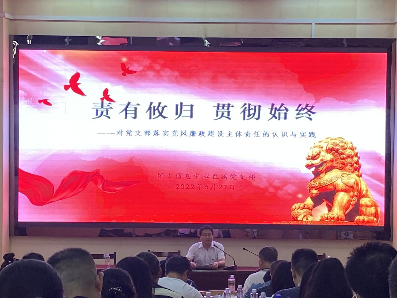 图文信息中心直属党支部书记黄晓东同志以《责有攸归 贯彻始终——对党支部落实党风廉政建设主体责任的认识与实践》进行专题授课。纪监综合室工作人员,结合纪检监察队伍工作实际,分别从《如何开展基层党组织政治监督》《公文写作标点易错“名单”及纪检委员纪实本填写说明》《专业特色与清廉文化相融 助力清廉咸职创新建设》《纪检监察信访举报工作概述》进行业务交流。