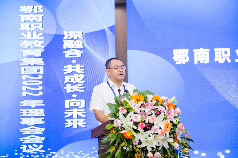 陈红卫作鄂南职业教育集团2022年工作报告,用“政策支持注入新动力,管理运行构建新格局,协同育人彰显新成效,社会服务再创新业绩”四个“新”,全面总结回顾了集团2021年工作成绩,提出2022年要以服务地方经济社会高质量发展为宗旨,以提高技术技能人才培养质量为核心,以完善内部治理结构为重点,以深化产教融合校企合作为途径,着力提升办学活力,潜心培植特色亮点,深融合、共成长、向未来。