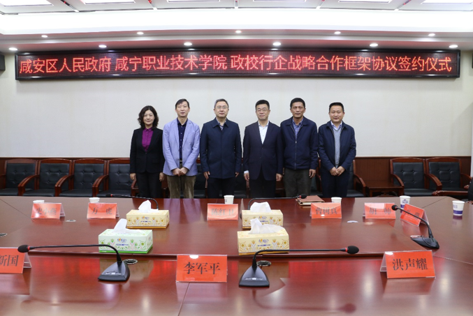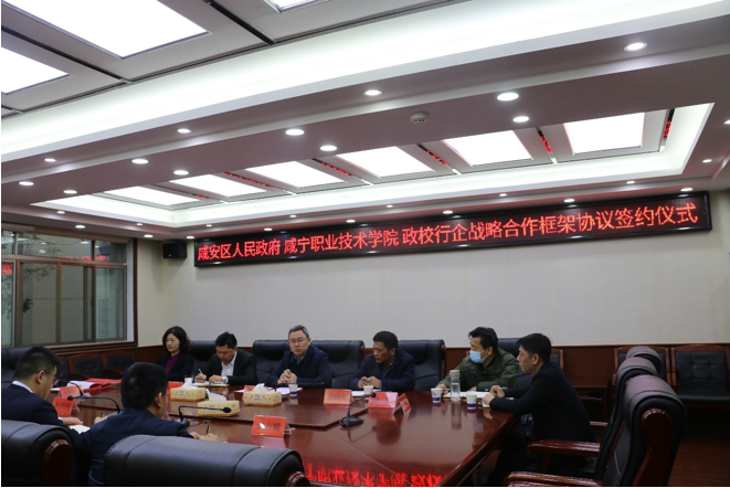 3月31日,咸安区政府与我校政校行企战略合作框架协议签约仪式在区政府举行,咸安区委副书记、区长李军平,副区长洪声耀、杜新国,我校党委副书记、校长陈红卫,副校长曹树真、科技处处长万虎、合作交流处处长史小燕、继续教育学院院长胡帅、创业就业指导中心处长卢珊以及咸安区相关企业、单位出席签约仪式,会议由杜新国主持。