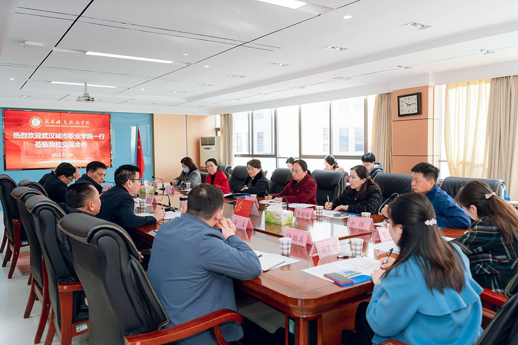 11月29日武汉城市职业技术学院副校长杭勇敏率领继续教育学院、旅游与酒店管理学院、文化创意与艺术设计学院院长、计算机与电子信息工程学院等二级学院院长一行14人来校考察交流。我校副校长曹树真、人文艺术学院、健康管理学院、信息工程学院负责人、继续教育学院工作相关人员参加座谈会,双方就学历继续教育、培训工作等方面座谈交流。会议由继续教育学院院长吴义三主持。