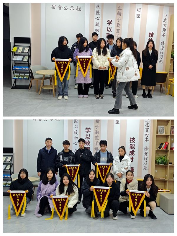 随后,建筑学院党总支副书记郭燕,学生科科长王立含为获奖寝室颁发了“文明寝室”红旗和奖品。获奖寝室代表纷纷表示,将继续保持良好的寝室卫生和文明习惯,为学院的寝室文化建设贡献力量。