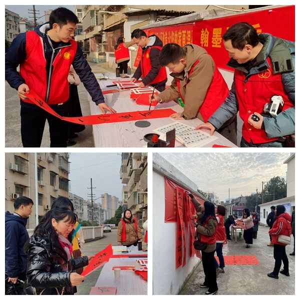 暖阳高照,翰墨飘香。1月27日,咸宁职业技术学院建筑学院学生党支部教师和学生志愿者在老林校小区开展“翰墨飘香·迎春送福”送春联进小区活动。活动现场,来自咸职建筑学院的师生铺纸研墨,在火红的宣纸上挥毫泼墨,起笔、收笔,一起一落之间,一副副散发着清新墨香、寓意吉祥的春联跃然纸上,一幅幅饱含着美好愿景的春联,弥漫着节日的气息。