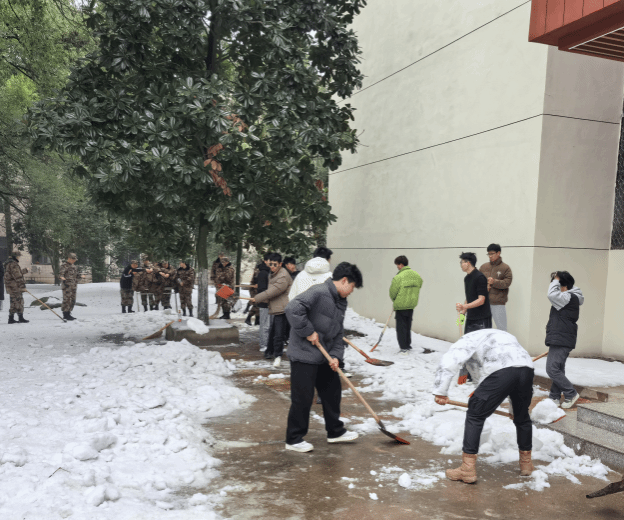 活动前,党总支书记张武洪号召教师提供清扫工具。活动中,任课老师、辅导员带领同学们集合、取工具、扫雪、除冰,所有步骤都有条不紊进行,因冰层较厚,各位同学接力清扫。大家将除冰清雪当作一件趣事,相互配合、齐心协力,青春靓丽的劳动身影溢满校园。室外温度很低,但寒风挡不住同学们的热情,团结协作的场面让这个冬日变得温暖,同学们冻红的脸颊和铲雪的身姿构成一副动人的画卷。