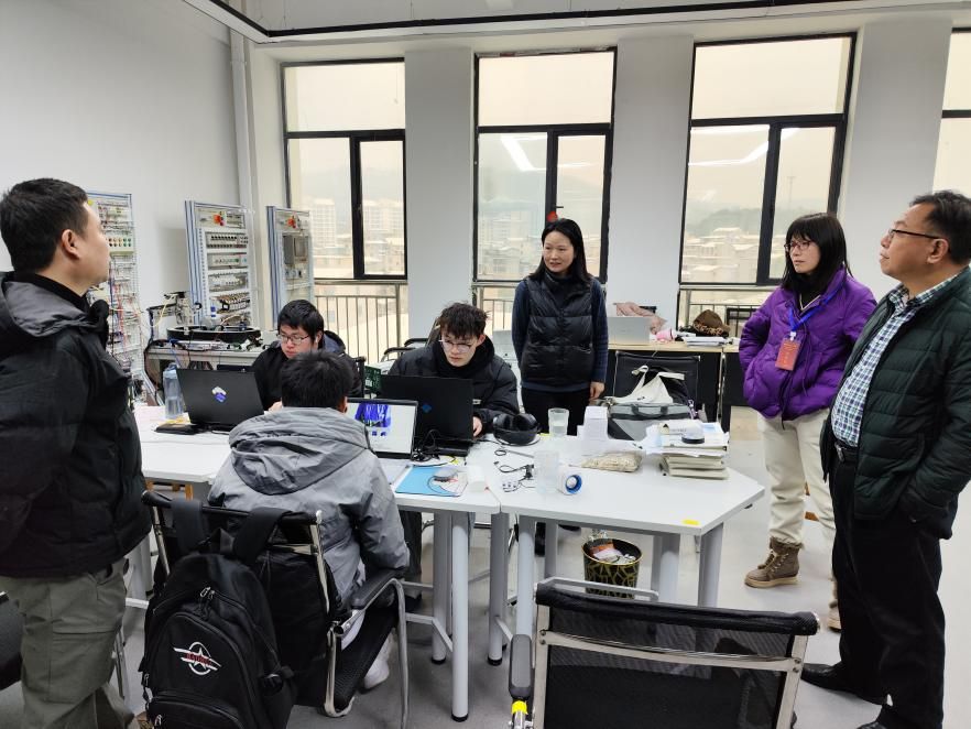 据了解,工学院今年由18名老师和17名学生组成参赛团队角逐5个赛项,并已于去年12月下旬启动集中备赛。备赛师生放弃休息时间,在虚拟仿真实训基地夜以继日埋头苦练,年前一直训练到腊月22,年后正月初八已全部返校继续备赛。同时,为了给备赛学生创造更好的训练条件,2月22日,院长吴涛、副院长杨彦伟、智能制造系主任谢承和工业机器人教研室主任聂波带领参赛学生,冒着严寒天气前往黄冈职院交流学习。