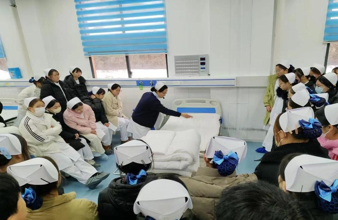 2月28日,校党委委员、宣传部(统战部)部长华先宙带队来到育婴师基地听取教师薛俊珍的《基础护理》课程,薛俊珍本节课授课内容为护理操作中常见的铺床技术,从物品准备至床单位整理完毕,薛俊珍完整、清楚、细致地向学生讲授并演示铺床技术中床头至床尾的平铺方法。学生听课认真,练习积极。课后,华先宙对薛俊珍的教学表示了充分肯定,对在课学生积极参与课堂实践进行了鼓励。