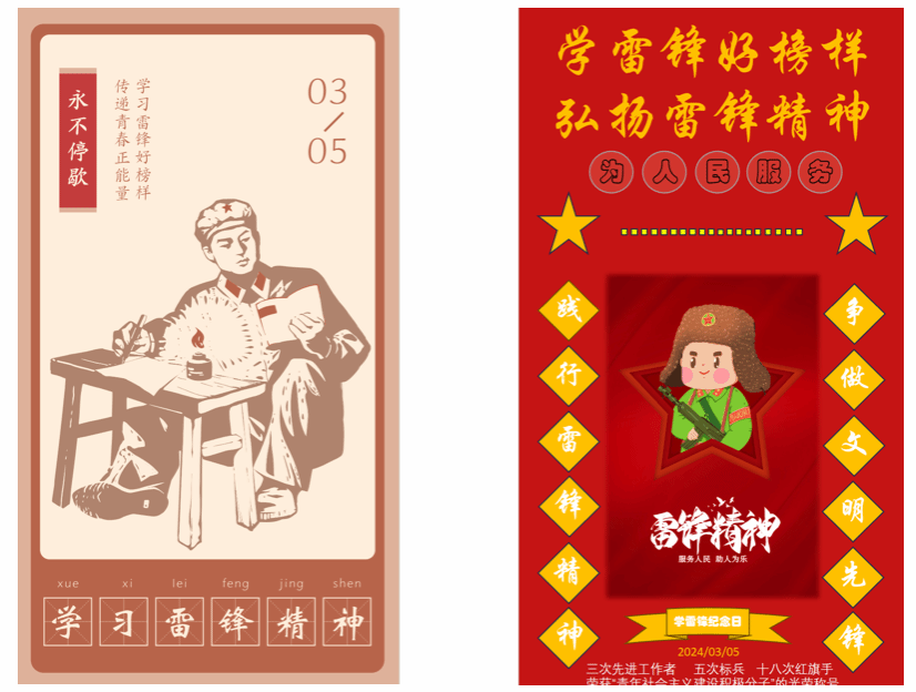 同学们利用信息技术专业技能,制作了一批富有创意和感染力的电子海报,展示了雷锋同志崇高品德和无私奉献。