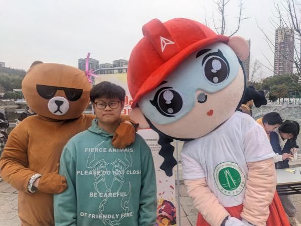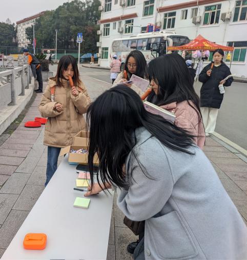 活动包括与“玩偶”拥抱并合影、撰写活动卡片表达感恩或祝福两个部分。活动期间,众多同学积极参与,纷纷与玩偶献上“爱的抱抱”,并写下对生活、对未来、对同学、对陌生人的祝福。很多同学收到了来自陌生人的“爱意”。