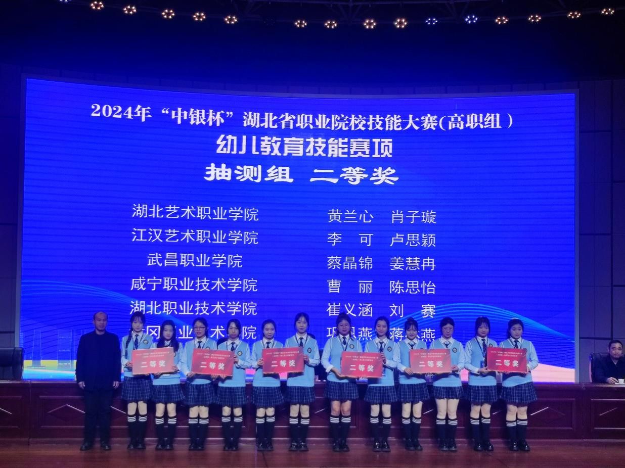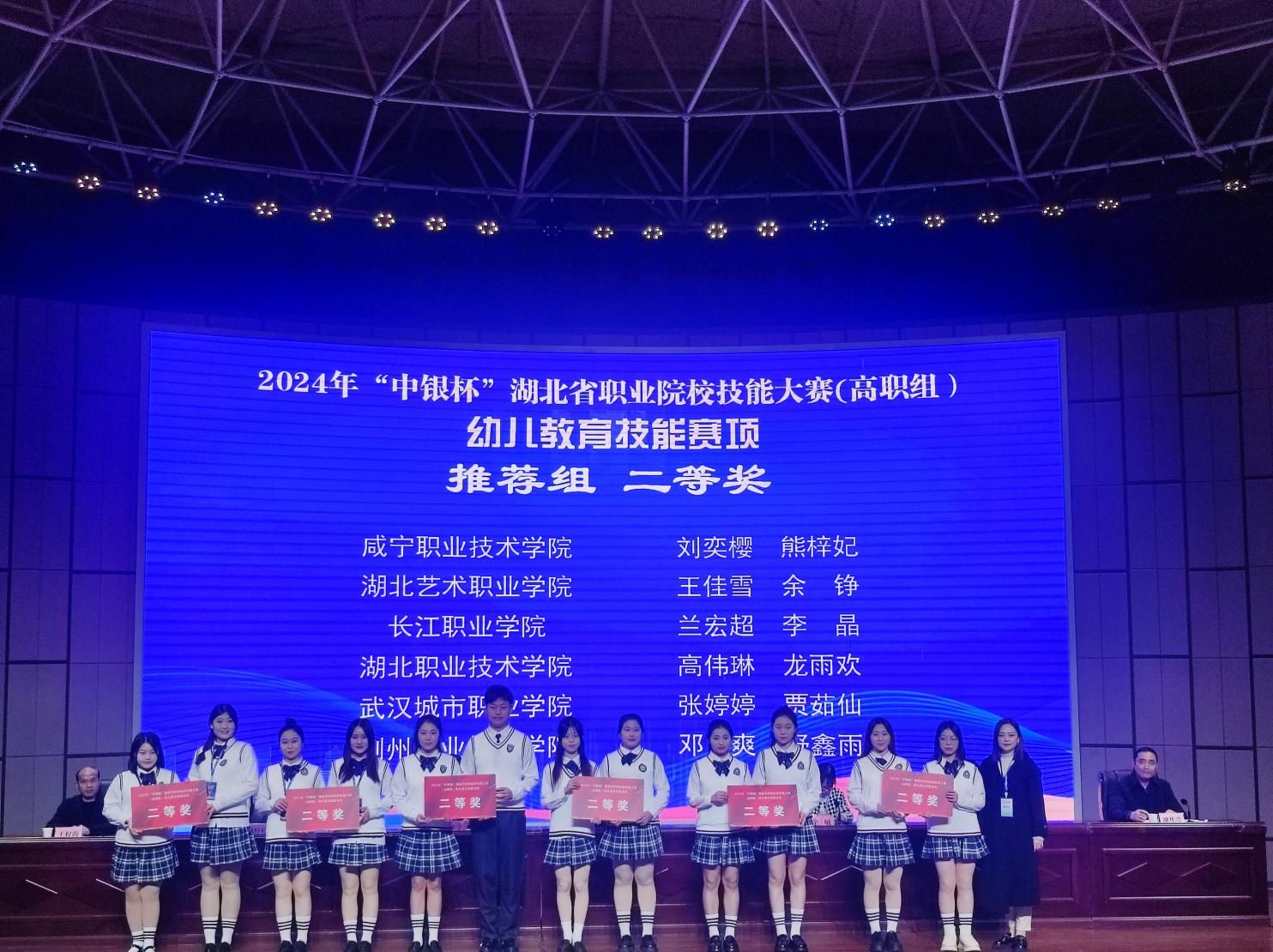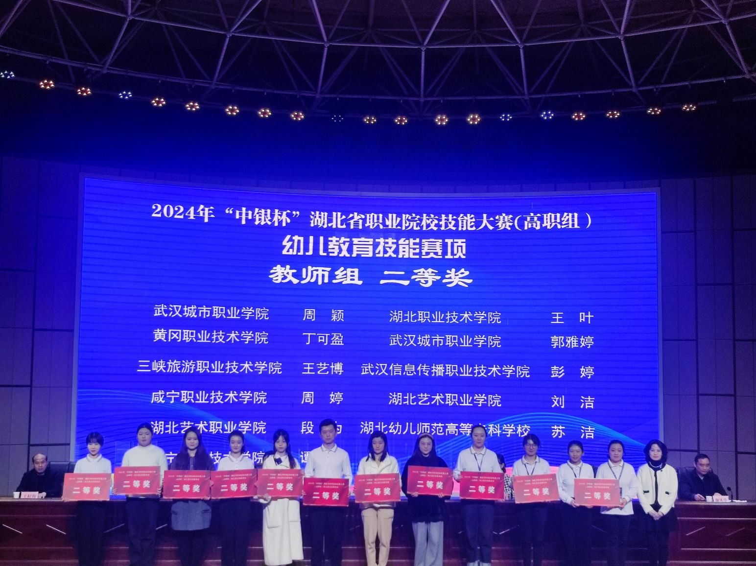 3月11日上午,2024年湖北省职业院校技能大赛(高职组)幼儿教育技能赛项在仙桃职业学院落下帷幕。本次比赛共有来自全省28支队伍参赛,人文艺术学院师生团队在比赛中以良好的综合素质迎接挑战,展现出过硬的专业技能与良好的专业素养。经过三天的激烈角逐,师生团队喜获佳绩——刘奕樱、熊梓妃荣获学生组推荐队团体二等奖,曹丽、陈思怡荣获学生抽测队团体二等奖,谭璇、周婷荣获教师组个人二等奖。