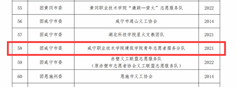 咸宁职业技术学院建筑学院传来重磅喜讯,该学院志愿服务队在湖北省“本禹志愿服务队”2023年度拟命名和2014—2022年度复核拟保留命名中脱颖而出,顺利通过复核!