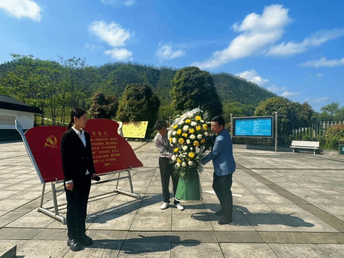 在羊楼洞、金峰山革命烈士纪念碑前,全体人员庄严肃穆,整齐列队,向烈士英雄鞠躬、敬献花篮花束、默哀致敬,听老党员讲述革命先辈丰功伟绩。