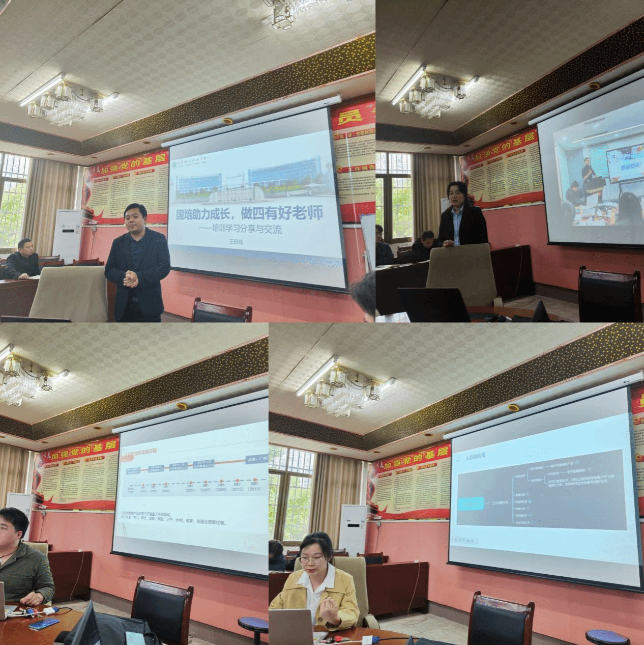 2024年寒假期间,信息工程学院派出9名教师参加国培项目、企业培训等各类专业技能培训。为检查外出学习教师的学习成果,提高教师教育科研水平,促进教师专业化成长,4月17日下午,在信息楼3楼会议室,开展学习成果交流教研活动,全院教职工参加活动。