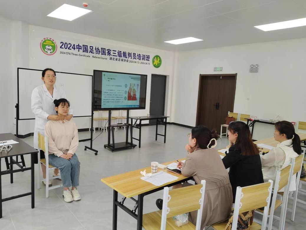 竞赛前,各组教师团队认真准备;竞赛中,每位参赛教师全面展示自己独特的教学风格和精心设计的教学方案、实施报告及PPT。代魁、罗佳、胡娜教师团队授课课程为《老年健身》,在深入了解老年人的身体状况和运动需求后,精心策划本次课程,为大家带来古法健身操、简化二十四式太极拳第二十一式转身搬拦捶及八段锦第一式双手托天理三焦等运动项目演示,采用循序渐进的教学方式,从基础动作入手,逐步引导学生掌握正确的运动技巧。金昭、郭畅、张彭教师团队授课内容为《健康评估》中甲状腺及淋巴结评估,团队教师进行情景演练—模拟医生与患者之间的交流和评估后,现场演示甲状腺的视诊、触诊、听诊及头颈部淋巴结触诊检查,详细讲解每个步骤的注意事项和操作要点,随后让学生分组进行练习,引导学生在操作中注意人文关怀,理解医学人道主义精神,尊重患者权益,关爱患者身心健康。11个教学团队的教学展示亮点纷呈,技能突出,可圈可点。