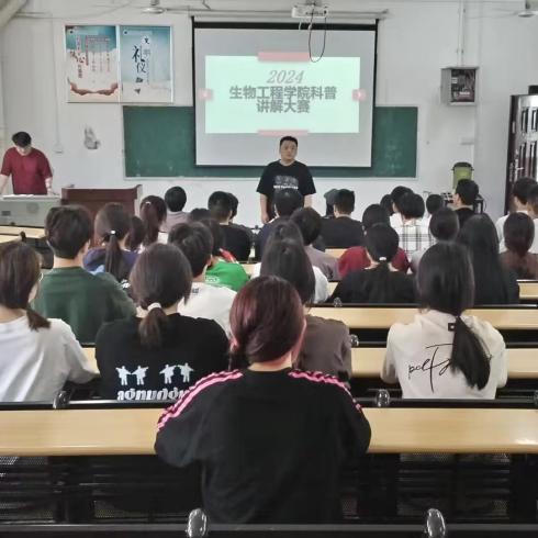 为深入学习贯彻党的二十大精神,全面落实中共中央办公厅、国务院办公厅《关于新时代进一步加强科学技术普及工作的意见》要求,进一步普及科学知识、弘扬科学精神、提高科技传播能力,生物工程学院团总支于5月10日举办了2024年学生科普讲解大赛。我院学工科科长徐亮担任评委,部分辅导员出席活动。