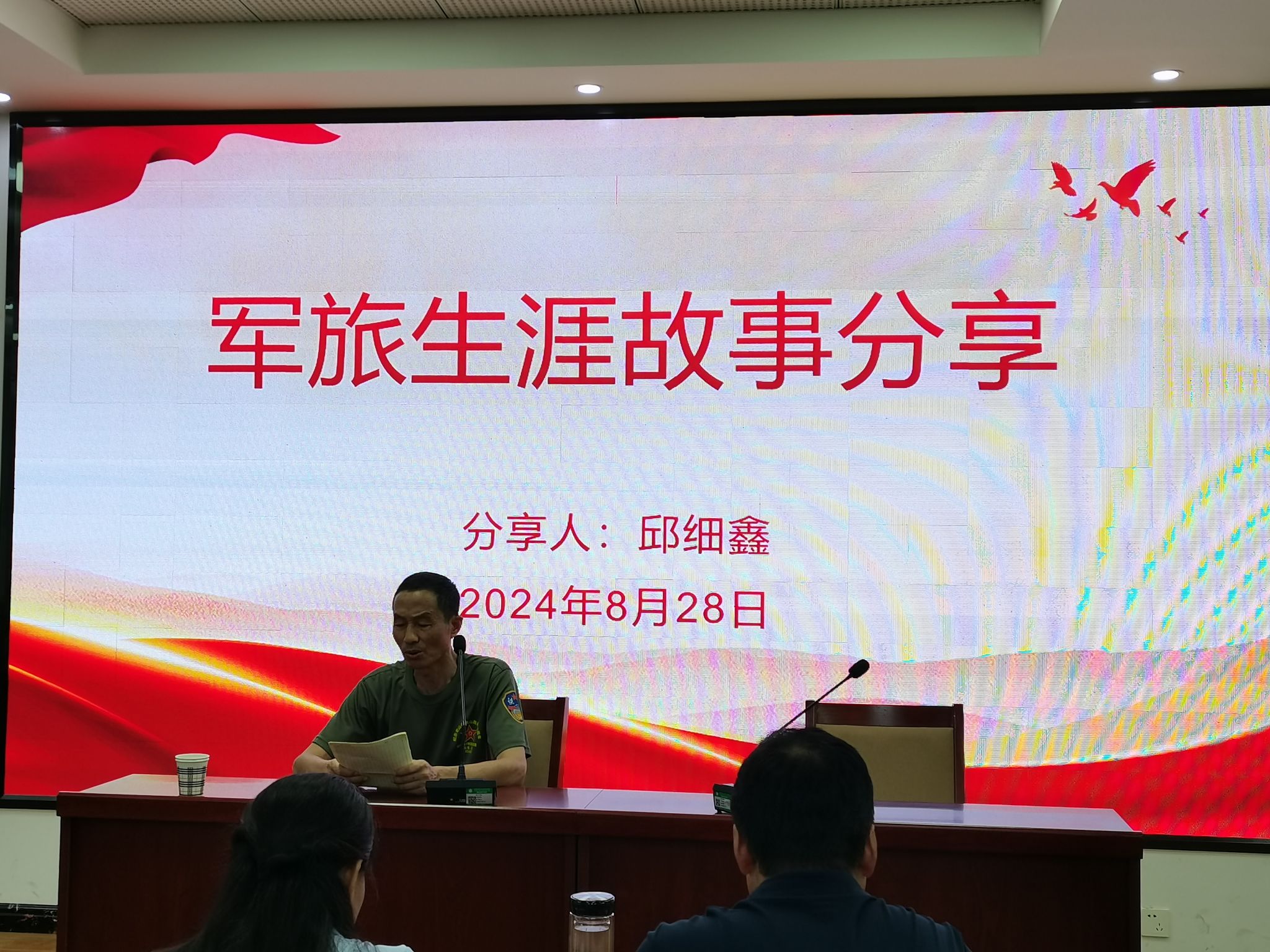 退伍老兵战时戎装在身,他们保家卫国、冲锋在前、不怕牺牲;战后脱下戎装,他们依然在不同的岗位上接续奉献、发光发热,为社会带来正能量。为引导广大党员干部牢记初心使命,发扬军人艰苦奋斗作风,8月28日下午我院特邀退伍老兵邱细鑫来院给全体职工分享军旅生涯故事。