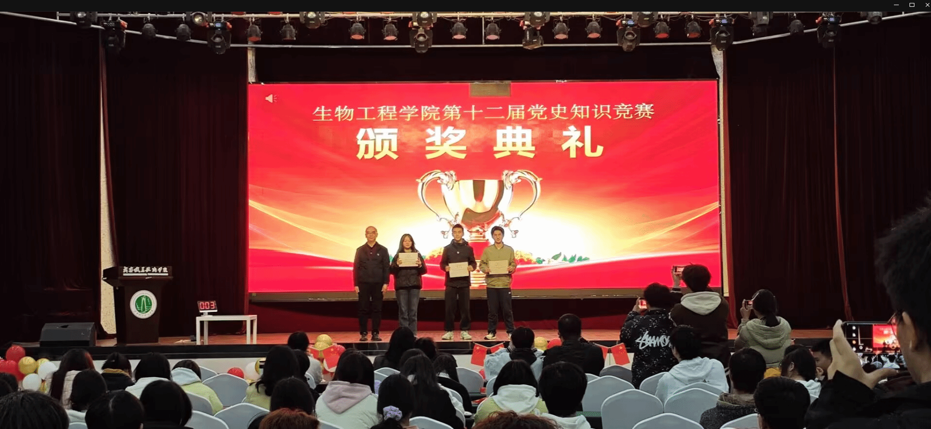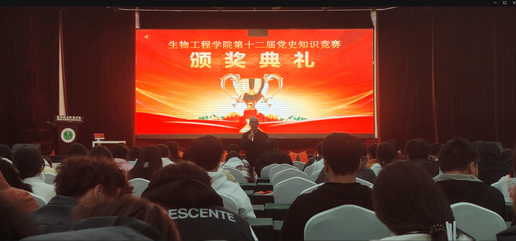 为进一步增强学生对党的认识,加强我院学生思想政治教育,提高我院学生思想道德素质,生物工程学院团总支学生会于11月27日19时在大学生活动中心举办了2024年党史学习教育活动知识竞赛。生物工程学院副书记胡美勇以及部分辅导员出席本次活动。