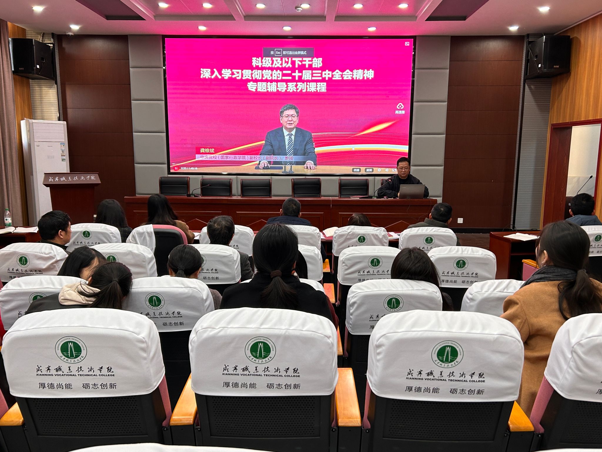 根据《咸宁职业技术学院科级干部学习贯彻党的二十届三中全会精神培训工作方案》要求,大家集中观看由中央党校(国家行政学院)副校长(副院长)、教授龚维斌所作的《发挥经济体制改革牵引作用,全面推进各领域改革》报告。龚维斌教授围绕发挥经济体制改革牵引作用对于全面深化改革的重大意义、深化经济体制和各领域改革的主要任务、全面推进各领域改革的基本原则3个方面对党的二十届三中全会提出的新思想新论断、作出的新部署新要求进行了全面宣讲和深入阐释,为我们理解把握党的二十届三中全会精神的核心要义和实践要求指引了方向。进一步明确了经济体制改革在全面深化改革中的核心地位,以及它如何引领和推动其他领域的改革进程。