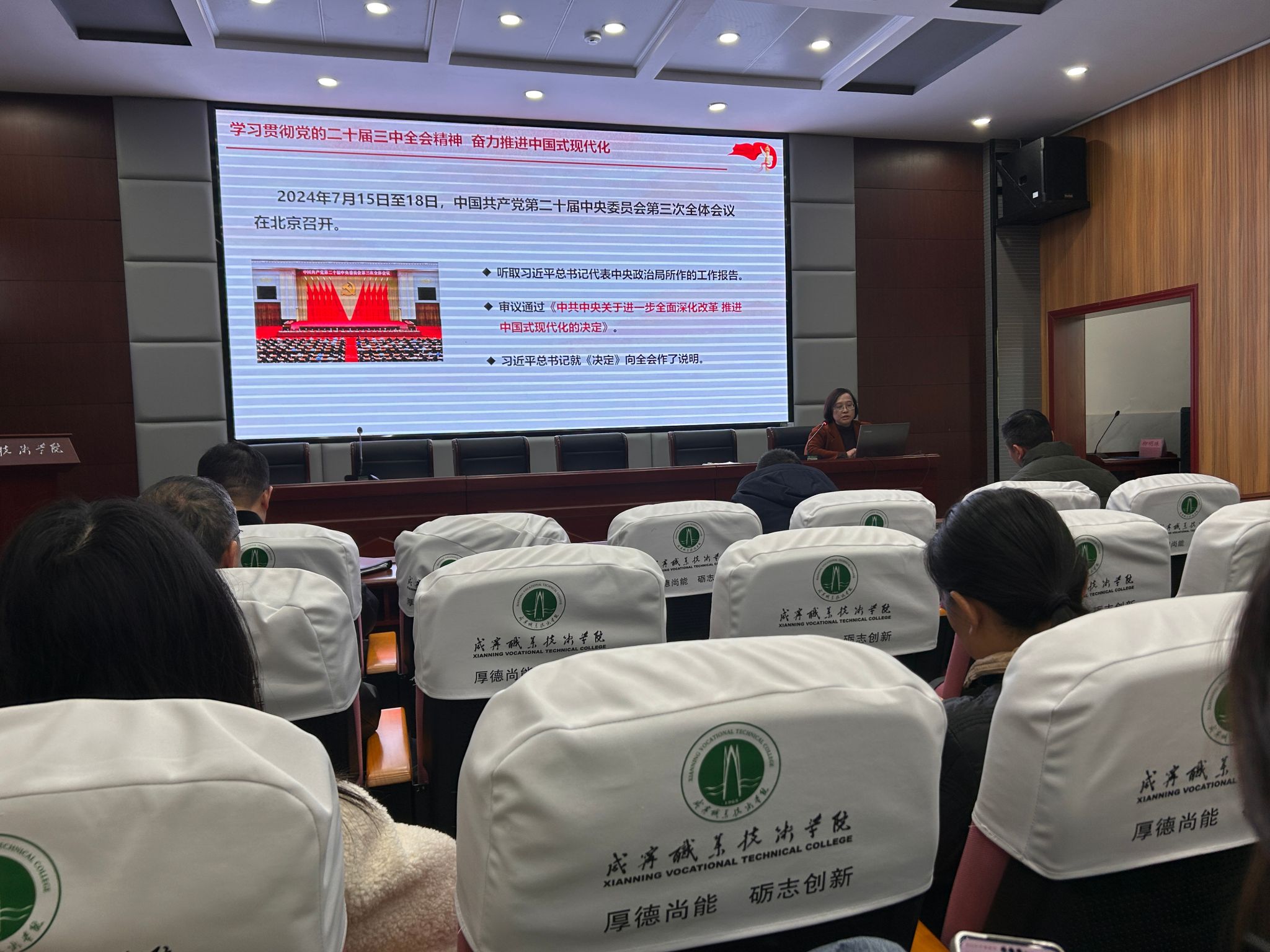 随后,院长余永欢宣讲党的二十届三中全会精神,从深刻认识把握全会的重大意义、深刻认识把握重大成就、深刻认识把握全会的精髓要义和深刻认识把握重大改革举措四个专题阐述。要求全院教职工深刻领会党的二十届三中全会精神,要不断将学习成果与学习贯彻习近平新时代中国特色社会主义思想、贯彻落实习近平总书记对湖北的重要指示精神、学习贯彻习近平总书记关于教育的重要论述结合起来,在今后的工作中,要勇于创新、敢于担当,不断提升教育教学能力,以实际行动推动学校事业蓬勃发展。