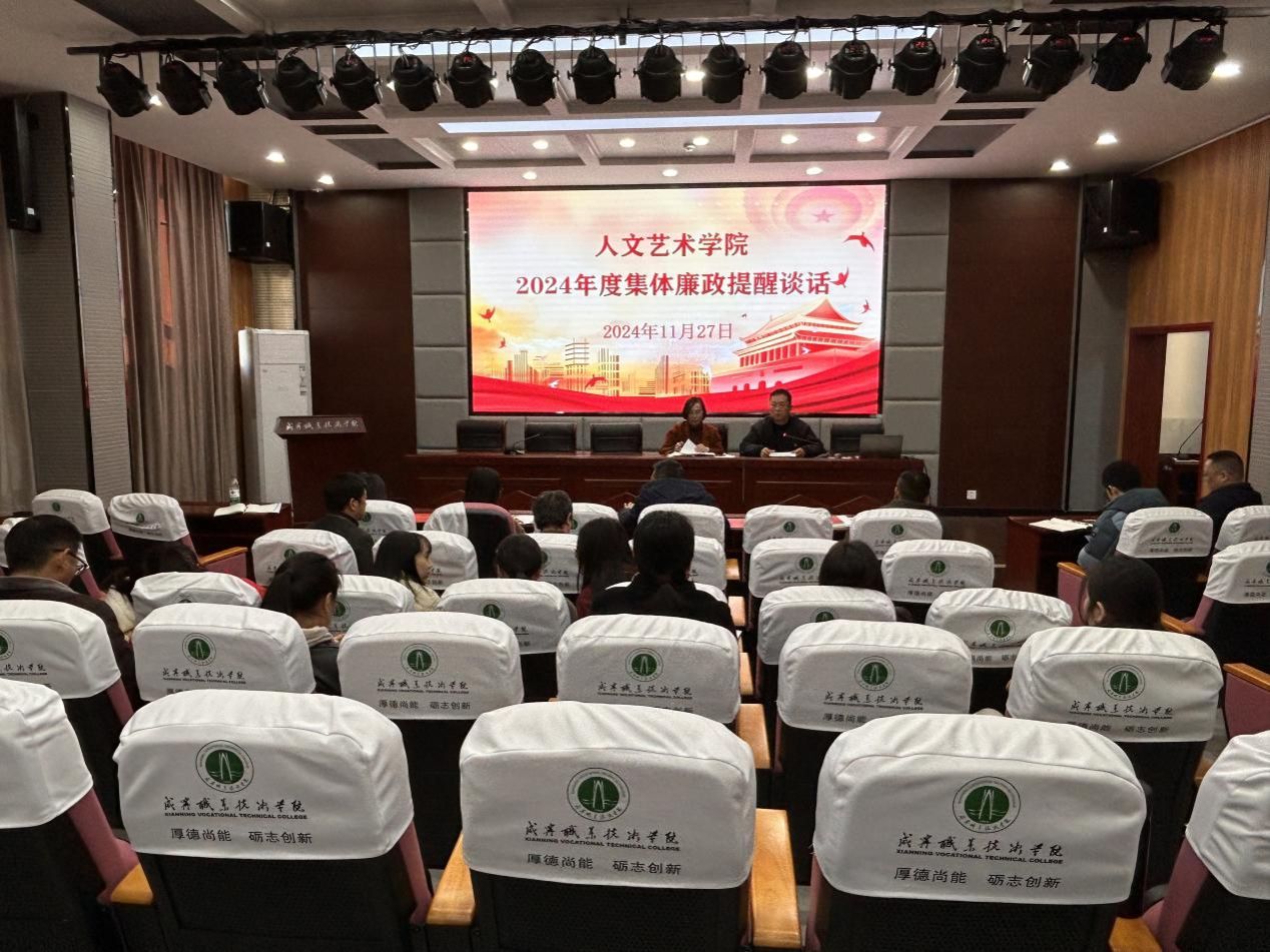 为深入贯彻落实党的二十届三中全会精神及中央、省、市纪委全会精神,进一步压紧压实全面从严治党政治责任,加强对关键少数的监督,加大党内监督力度,严格落实“两个责任”,增强党员干部廉洁自律的自觉性,根据《中共咸宁职业技术学院纪律检查委员会、省监委驻校监察专员办公室2024年工作要点》,11月27日下午,人文艺术学院开展2024年度集体廉政提醒谈话活动,学院党总支书记韩飞、院长余永欢对班子成员、风险岗位人员各部门负责人、党支部书记进行廉政提醒谈话。