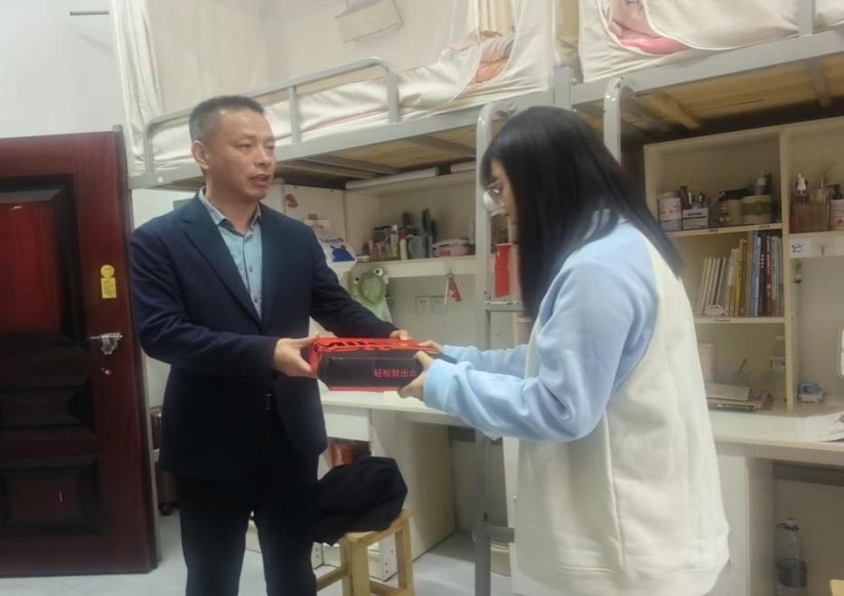 在走访过程中,华先宙热情地与学生进行沟通、交流,详细了解了慰问学生的学习和生活情况,耐心询问和倾听同学们的想法。华先宙指出,良好的习惯有利于大家的学习和生活,大一新生要养成良好的学习和生活习惯。他勉励学生在大学里要学习好专业技能,积极面对生活和学习中的困难。在交流的过程中,华先宙为学生送上冬季慰问品,叮嘱学生注意防寒,认真学习,锻炼好身体。