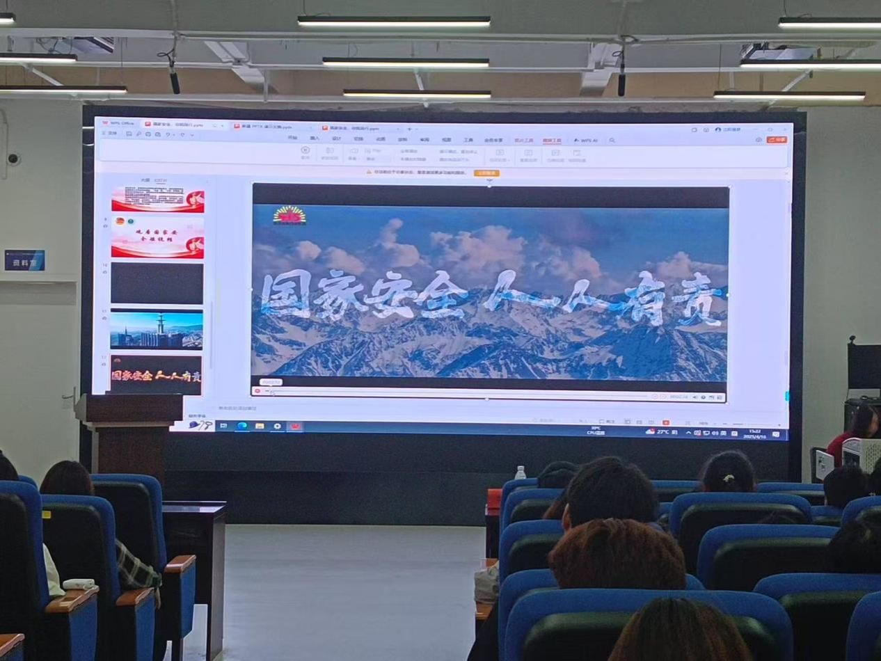 4月16日,在虚拟仿真大楼203举行的国家安全教育主题宣讲会上,师生共同观看由国家安全部门特别制作的警示教育片。视频紧密围绕习近平总书记关于加强国家安全教育的重要指示精神,结合近年来发生的真实案例,讲述当前国家安全面临的复杂挑战与潜在威胁。学生科长吴雨真则分享了自己对国家安全教育的见解,借助详实的数据资料以及深入的讲解分析,进一步强化同学们的国家安全意识,让大家深刻认识到国家安全的重要性和紧迫性。