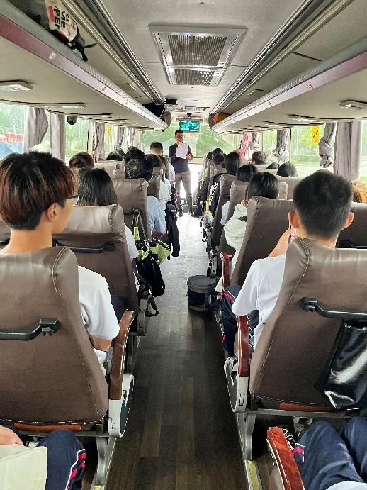 当日 7 时 45 分,研学团队集合完毕。丁胜实老师现场讲解活动目的、任务安排与纪律要求,董春燕、廖金果老师担任“安全队长”,确保行程安全有序。