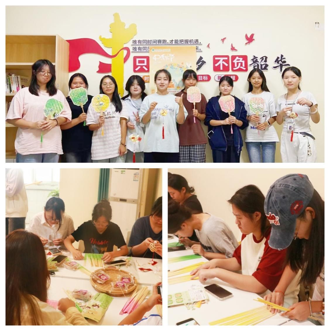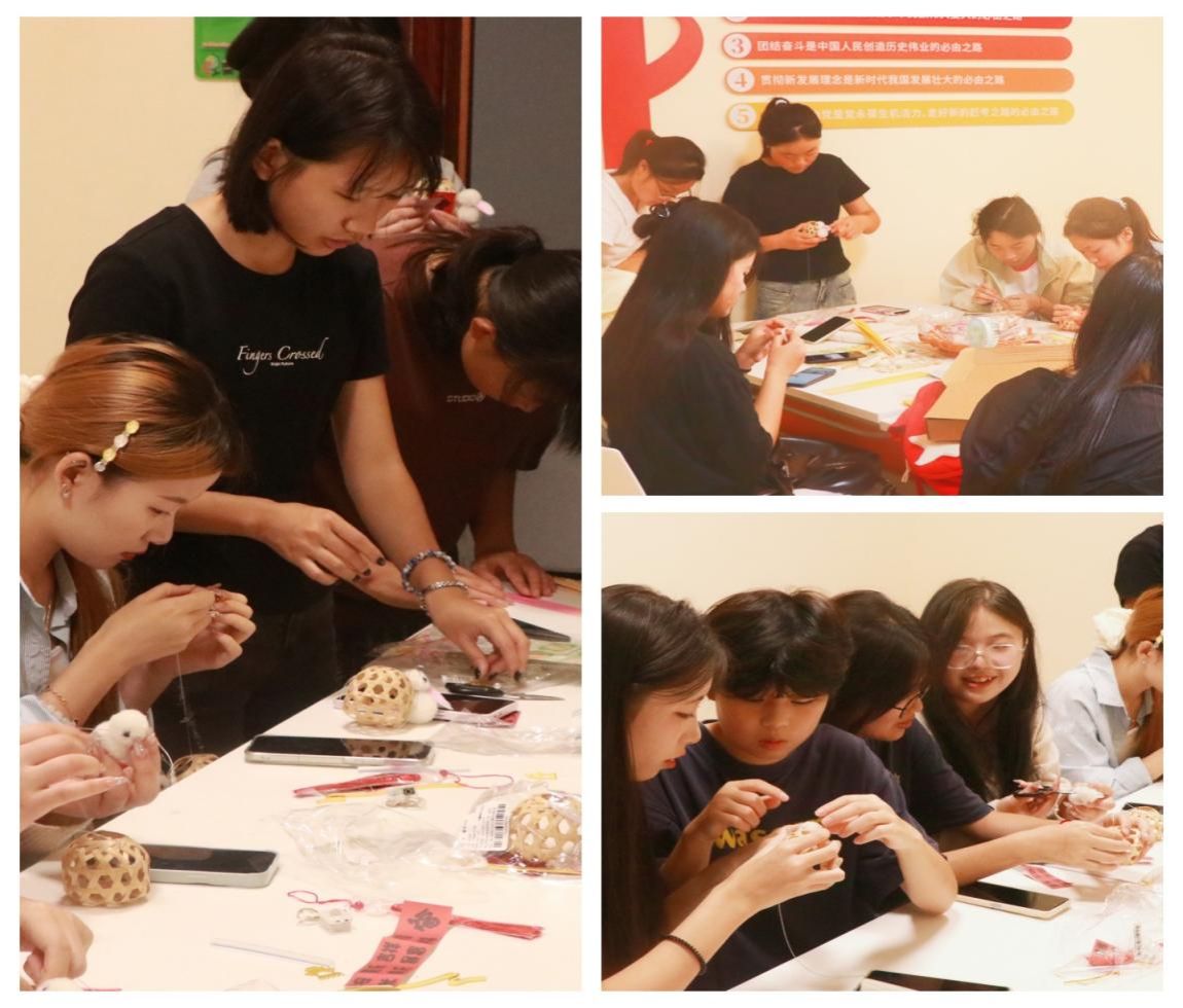 竹扇制作现场则是一场创意与传统的碰撞。朴素的竹扇基底上,同学们或挥毫泼墨书写中秋诗句,或提笔绘画玉兔、明月等经典意象,原本空白的竹扇瞬间变成独一无二的文化艺术品,既展现了传统竹艺的雅致韵味,更彰显出当代大学生的审美素养与创作活力。