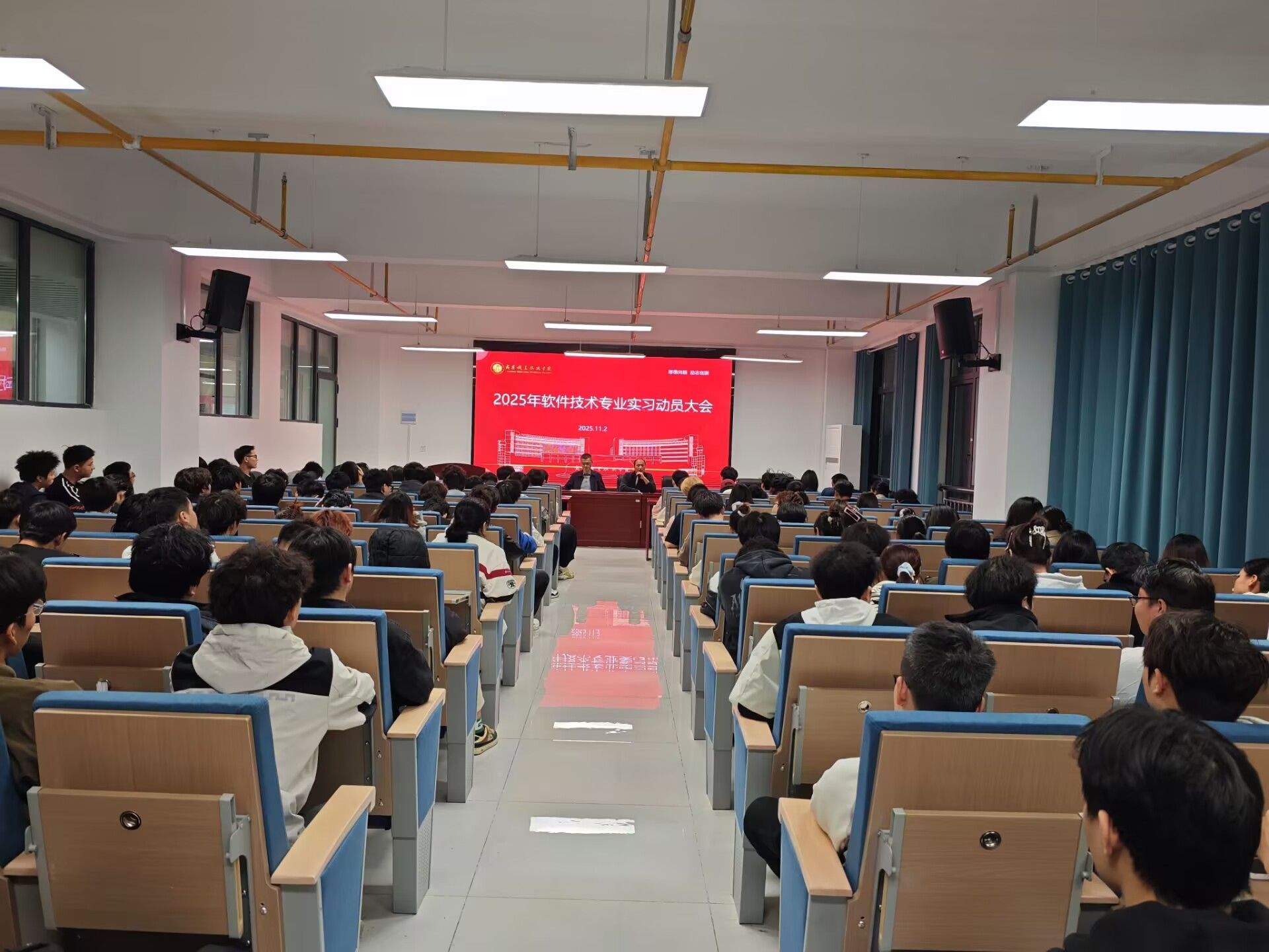 11月2日晚7点,信息工程学院软件技术专业在数字信息大楼多功能报告厅组织召开2023级学生顶岗实习动员大会。学院党总支书记张武洪、教学副院长尹光辉、学工副书记郑重、软件教研室全体教师、辅导员熊文文及软件技术专业143名学生共同参会。会议由软件教研室主任黄俊峰主持。