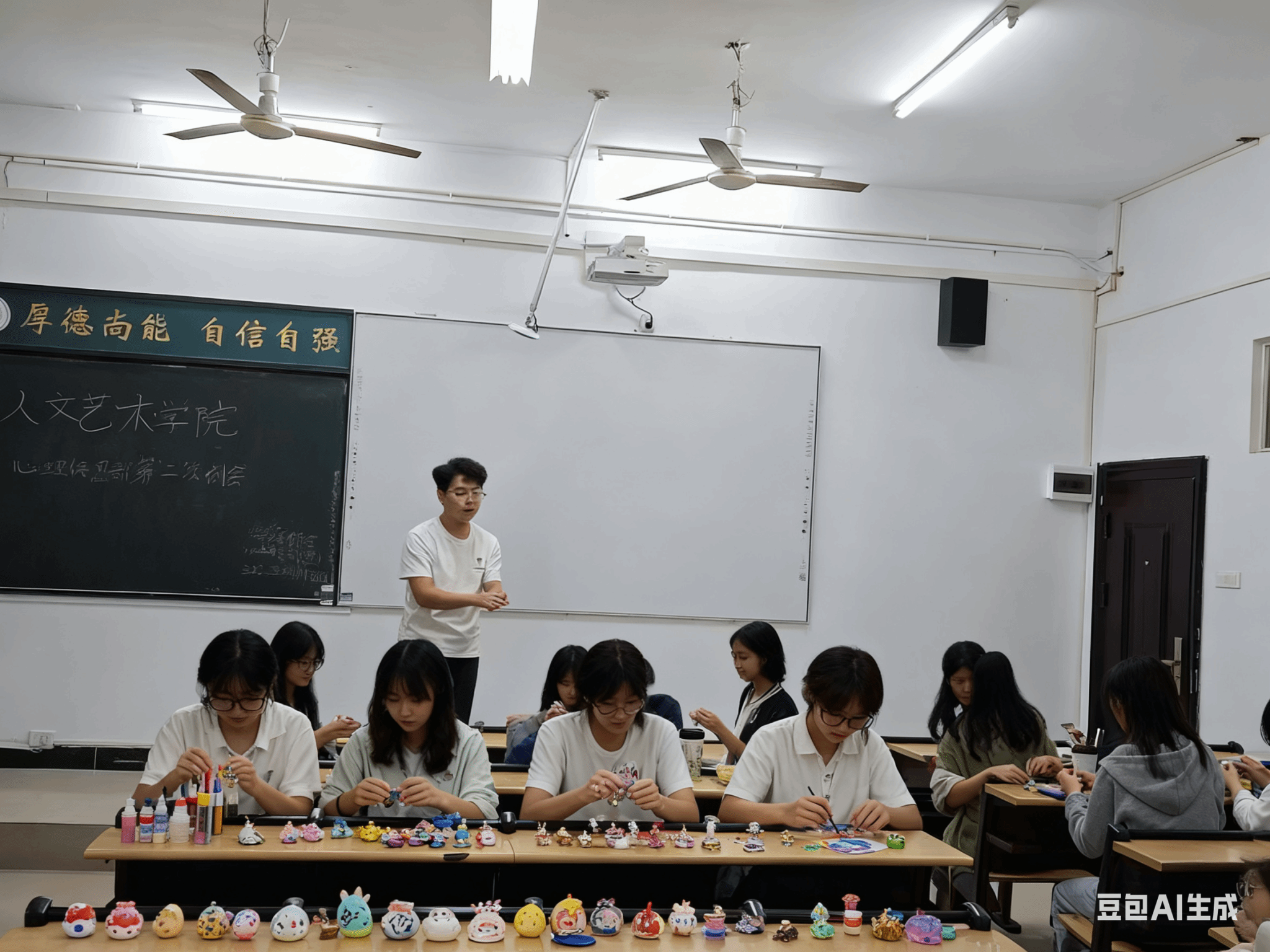 活动的压轴环节是彩绘创作。同学们围绕“我的心理健康”这一主题,对陶瓷小饰品进行创意彩绘。在这些色彩斑斓的作品中,新生们表达了对美好校园生活的憧憬与向往。艺术是情感表达的窗口,通过创作,同学们不仅能更直观地抒发内心感受,还能深切体会到集体的支持与力量。