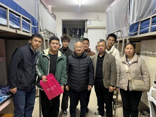 一行人离开宿舍前,张书记反复叮嘱同学:“降温了,保暖衣物要穿好;遇到坎,第一时间找老师。学院永远是你们的家。”