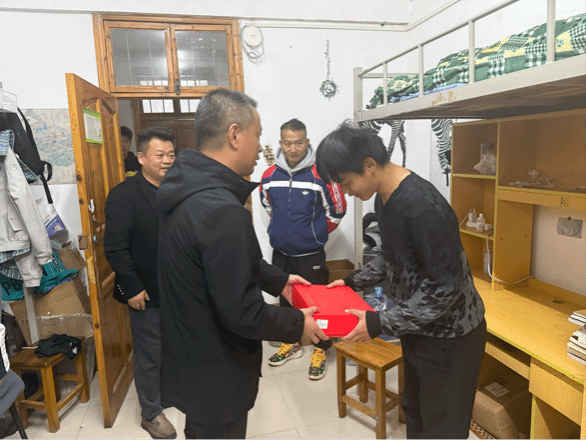 走访过程中,华先宙详细询问了同学们的学习适应情况、专业技能掌握进展及日常生活状况,并细心叮嘱大家注意冬季用电安全、做好防寒保暖。他还认真听取并记录了同学们在专业实训、校园服务等方面的意见建议,现场明确后续推进落实安排。活动中,学院为每位学生送上精心准备的“暖心礼包”,其中包含保暖物资与学习用品,在寒冷冬日传递学校的关怀与温暖。