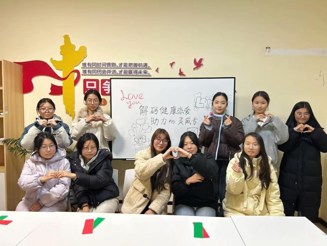 为帮助大学生树立健康恋爱观、提升亲密关系经营能力。2025年12月19日,健康管理学院于24栋学生公寓“琢玉坊”举办了主题为“解码健康恋爱,助力心灵成长”的心理团体辅导活动。本次活动由辅导员安影老师主持,10名学生共同参与,展开了一场关于爱与自我成长的深度对话。