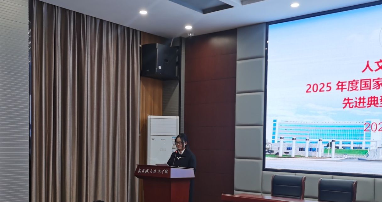 2025年12月25日晚,人文艺术学院在教育实训中心201成功举办2025年度国家奖助学金获奖学生先进事迹报告会。学院党总支书记韩飞、副书记杨帅出席会议,近百名大一、大二优秀学生代表到场聆听。