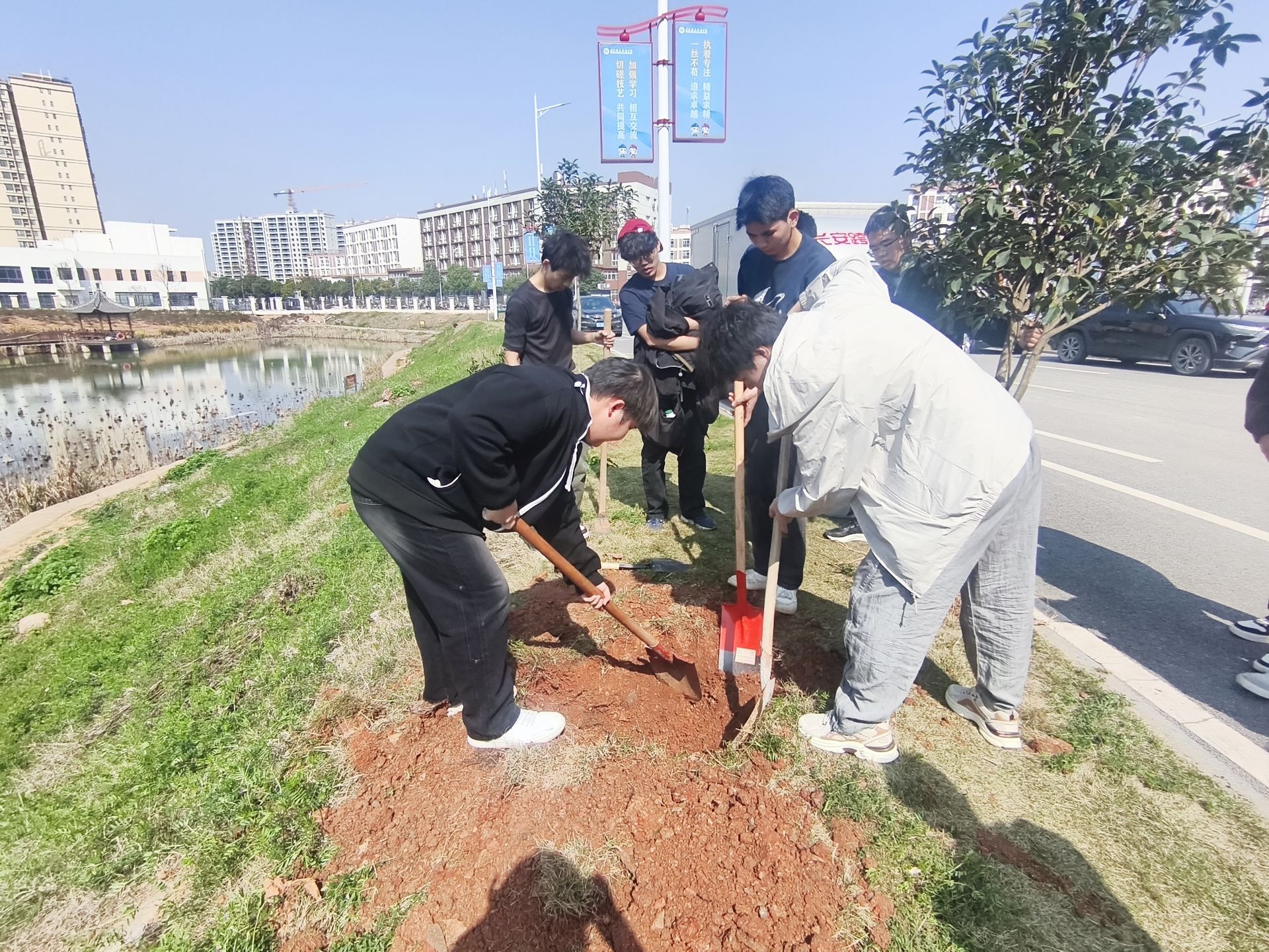 此次植树节活动,全体师生以劳动践行生态文明理念,不仅美化了校园环境,更增强了同学们环保意识与集体凝聚力。在校领导及老师们的带领下,同学们以此次植树为契机,持续践行绿色生活方式,守护生态环境,让绿色扎根心底,让青春与绿意共成长。