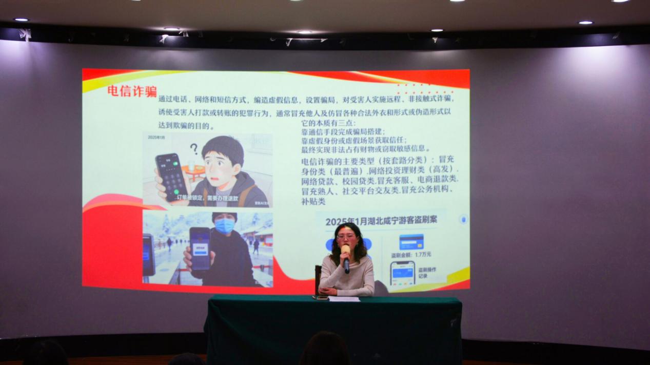 本次讲座由龚含梅老师主讲,她围绕校园高频网络安全问题,聚焦个人信息保护、网络诈骗防范与文明上网规范三大内容,重点提醒大家警惕刷单兼职、虚假链接、隐私泄露等隐患,切实提升自我保护与风险辨别能力;强调文明上网的重要性,引导大家规范网络言行,不信谣不传谣,不随意发表不当言论,养成安全用网、理性上网、文明上网的良好习惯。最后,她号召学生干部主动担当起网络安全的坚定维护者,在日常用网中发挥模范带头作用。
