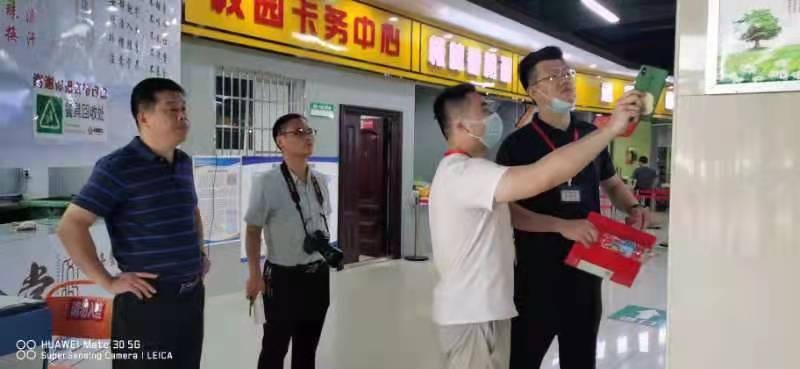 8月30日下午,市委文明办到学校丹枫美食城对消防通道、大厅卫生、光盘行动等文明宣传牌开展安全巡检。校宣传部、总务处有关同志参加巡检,