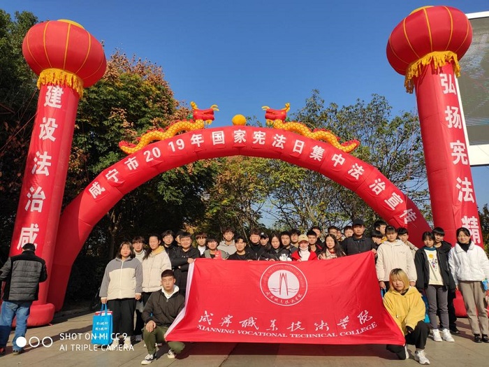为提高学生的安全防范意识,增强学生的法律知识,营造文明、平安、和谐的校园育人环境。12月3日,在“国家宪法宣传日”来临之际,校法制办柯琳老师、信息工程学院团学会书记汪操琴老师带领团学会学生干部及部分学生现场参与了咸宁市“2019年国家宪法日”法治宣传教育活动。