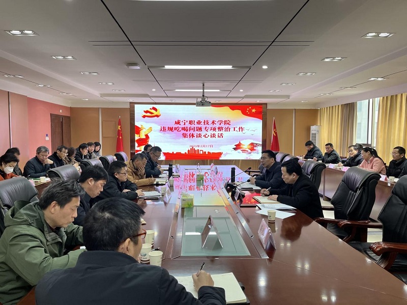 为深入贯彻落实违规吃喝问题专项整治,2月17日,我校召开违规吃喝问题专项整治工作集体谈心谈话会,校党委书记高焕清,党委委员、纪委书记、监察专员余为民同各行政处室负责人、各二级院部党政负责人针对违规吃喝问题开展集体谈心谈话。
