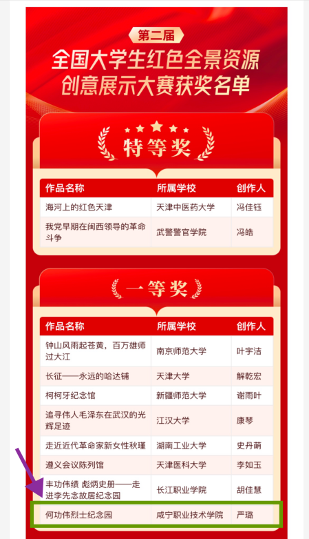 近日,第二届全国大学生红色全景资源创意展示大赛结果揭晓,我校马克思主义学院教师王金、龚斌安,生物工程学院教师王宗莉指导生物工程学院学生严璐、吴柳爚、毛天等创作的实践教学资源作品《何功伟烈士纪念园》荣获大赛一等奖。