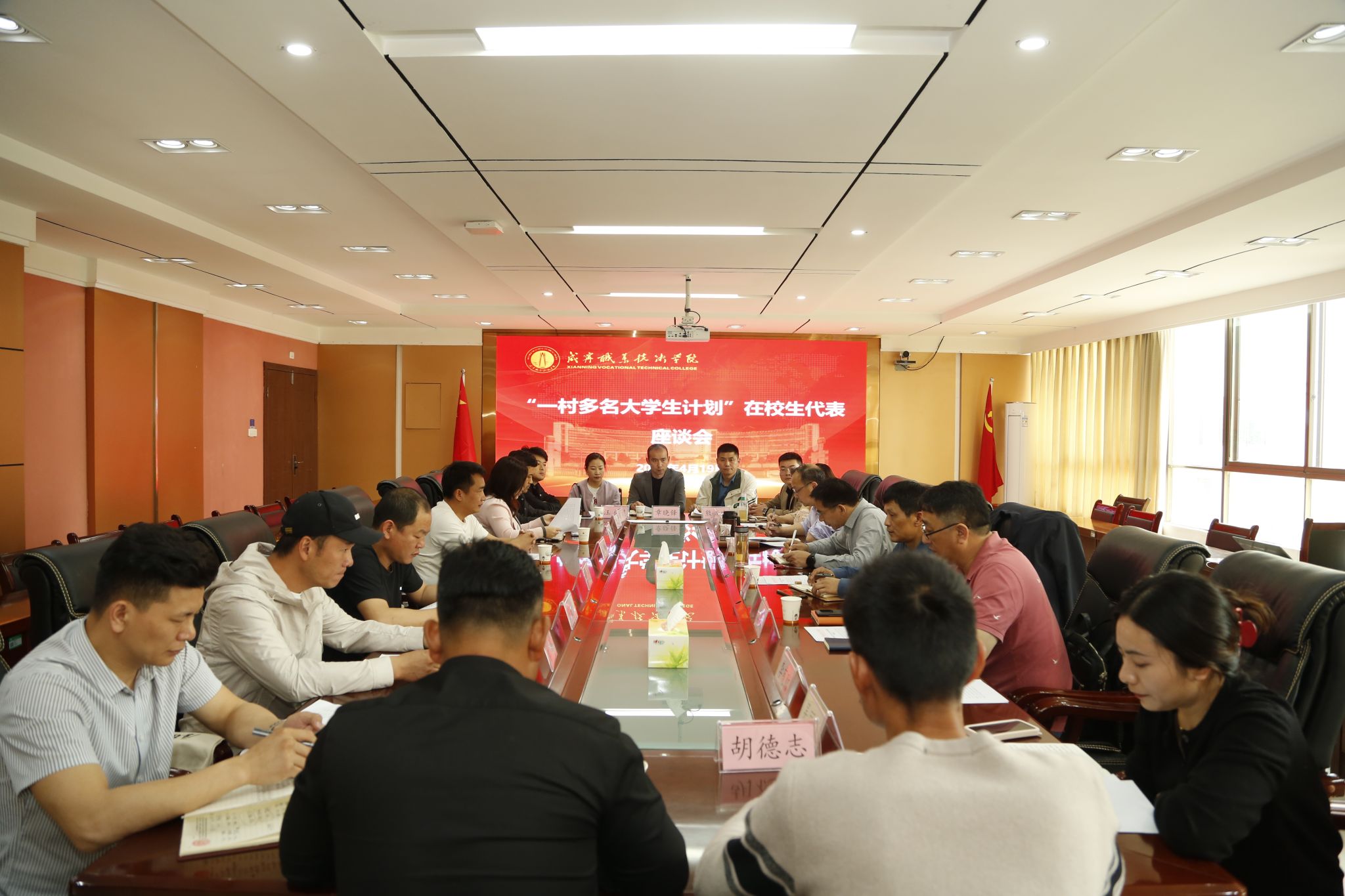4月19日,学校在行政楼409会议室召开“一村多名大学生计划”在校生代表座谈会和“一村多名大学生计划”优秀毕业生代表座谈会。学校党委书记高焕清,党委委员、副校长吴高岭,副校长曹树真出席会议并讲话,党委委员、组织部长曾志主持会议。