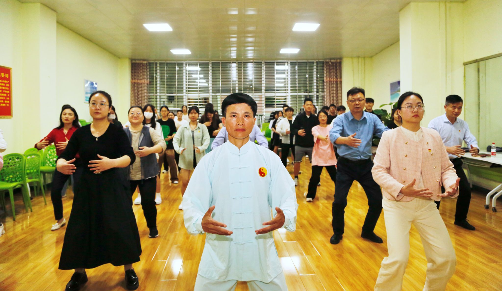 分享会最后,陈春秀老师带领全体参加活动的师生练习了一套中华传统养生功-八段锦,活动氛围轻松活泼,过程互动频繁,在参会者的一致好评和热烈掌声中结束。