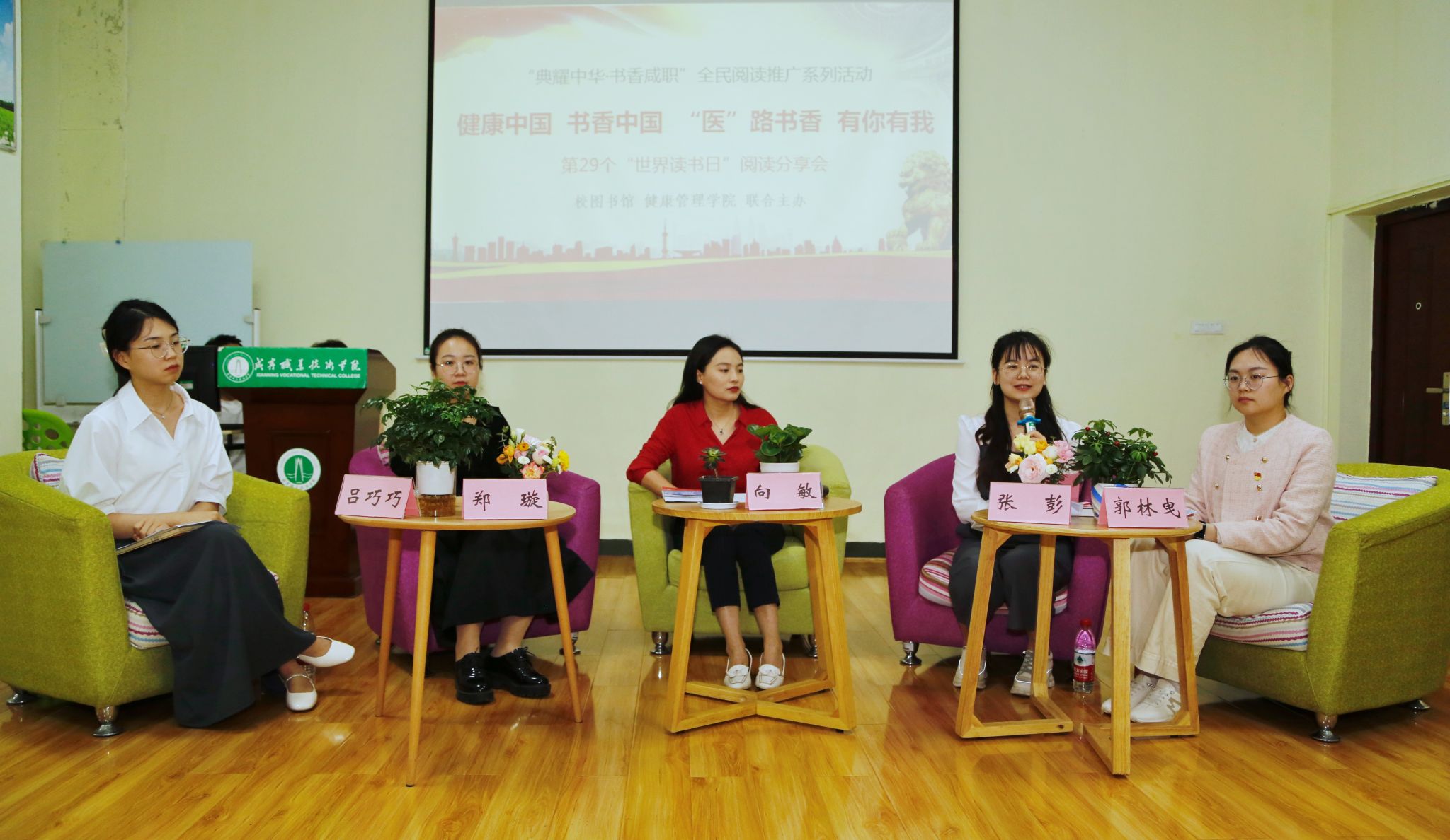 在第29个世界读书日到来之际,校图书馆、健康管理学院在心理健康教育中心团体辅导室联合主办以“健康中国 书香中国 ‘医’路书香 有你有我”为主题的阅读分享会。本次活动是我校“典耀中华·书香咸职”全民阅读推广系列活动之一,活动旨在以“医”为题,以书为媒,唤起健康意识,培植良好养成,倡导阅读经典,弘扬传统文化;倡议广大学生养成爱看书,勤读书,善读书的习惯,运用科学方法进行锻炼,成为自身健康第一责任人,融入“健康中国”战略,积极服务咸宁大健康产业。健康管理学院向敏、张彭、郑璇、郭林曳、吕巧巧、陈春秀老师参加了分享。