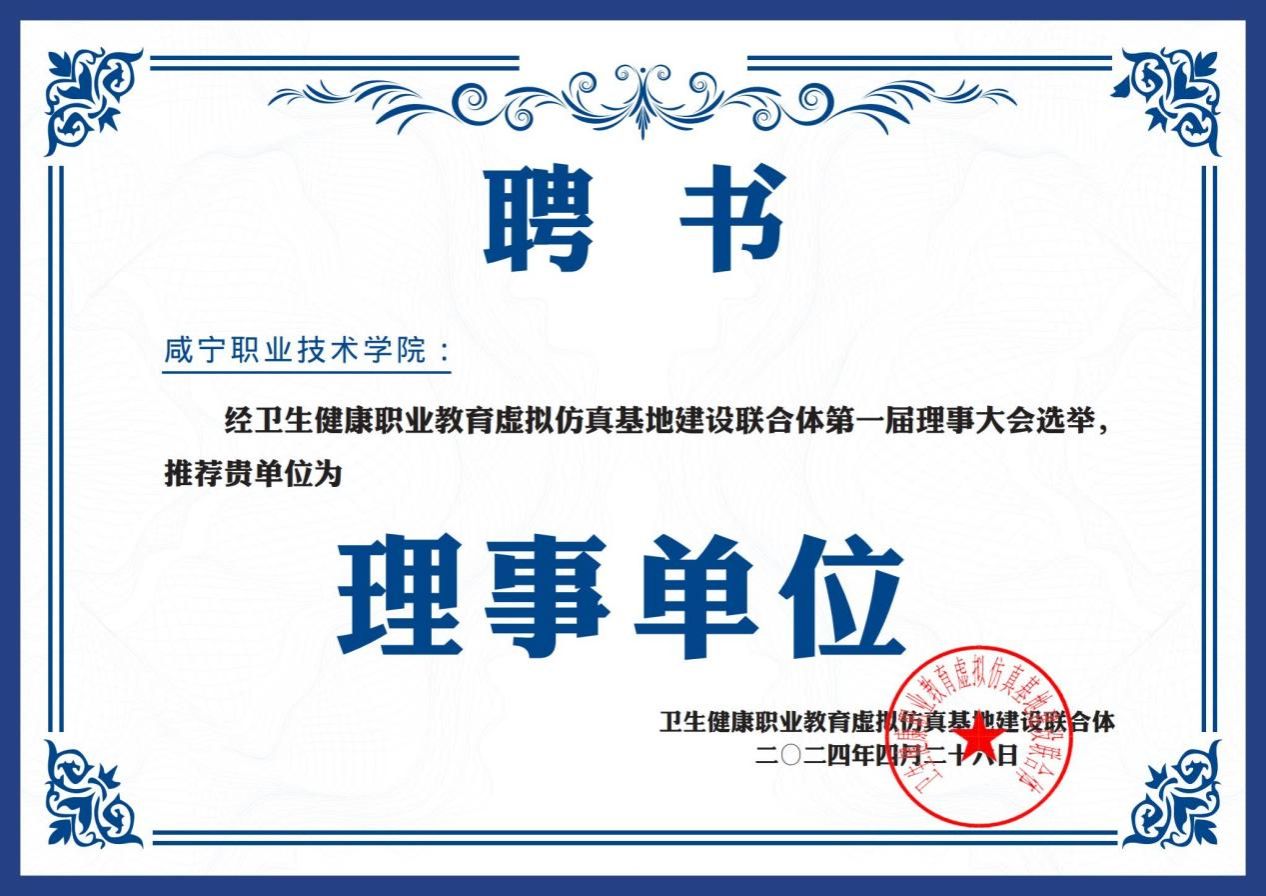 图三 卫生职业教育虚拟仿真基地建设联合体理事单位聘书