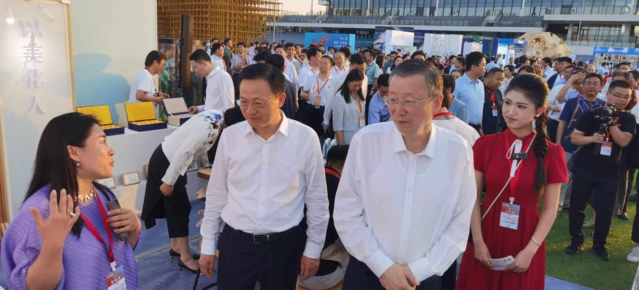 活动中,教育部副部长王嘉毅一行亲临咸宁职业技术学院工作坊展区参观,对蛋雕作品产生浓厚兴趣,与学生们一同感受荆楚文创的魅力,王嘉毅对工作坊《湖北的桥》系列蛋雕作品给予高度评价,勉励师生继续努力,不断创新,并要求学校积极发挥文化育人作用,大力推进文化传承创新,把美育浸润计划体系融入活动全过程。